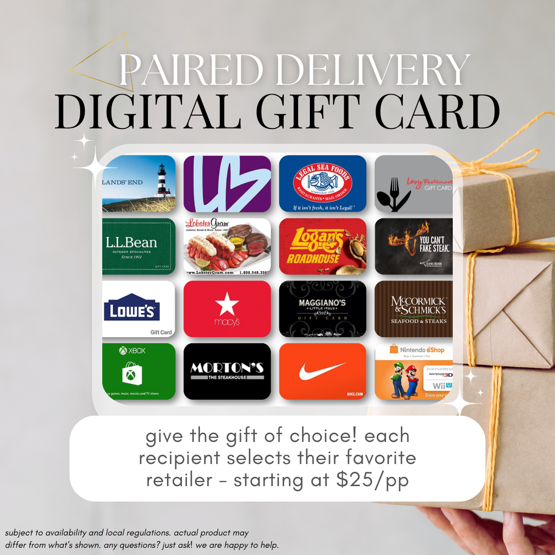 Digital Deliveries - Some gift cards are available for US event attendees only, though we are often able to provide an alternative for guests outside of the US. Please reach out to learn more!